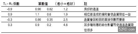 这些系数显然不能代表一个真实的通道,但其目的是要告诉我们如何利用接收到的信号R0 和R1,计算出通道的系数。至此,不妨思考看看MIMO 技术是否能够在所有的通道条件下,提供扩增容量的效果,答案是:否,透过前一个简化的范例,大致可以瞭解箇中的原因。在图3 的范例中,通道的单数值分别为0.957 和0.815,算是相当良好的MIMO 通道,因为两个值的比将近1(1.17)。由表1 可以看出,当其中一个通讯连结的系数改变的时候,会出现什么样的变化。如果耦合的系数和直接的系数在数值上差不多,则相位差会变得非常重要。