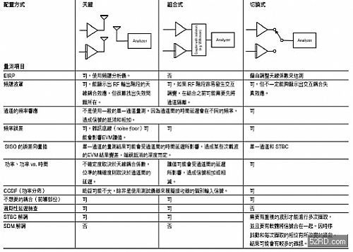 单一通道的量测会引发兴趣是因为可以使用既有的设备。就频谱的安规测试而言,所代表的是大部分其它的接收器。对MISO 系统来说,单一通道就是测试接收链需要进行的所有量测了。当然,在传统的旧式系统模式下使用时,MISO 的测试案例还会包括多重通道WLAN 发射器的运作测试。使用单一输入的缺点是,当装置是在要求最高的模式下运作,且会在测试埠间进行切换时(意味着测试时间会增加),无法完整地测试出装置内的交互作用情形。