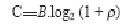 C=通道容量(位元数/秒)、B=佔用的频宽、ρ=信号/噪音比(SNR)(线性的比值,而非dB)