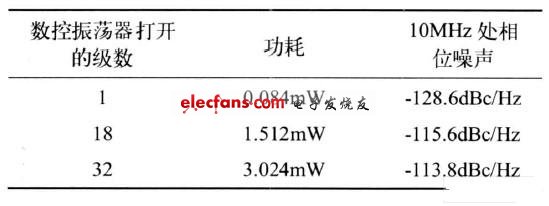 表1 数控振荡器不同级打开时的相位噪声和功耗