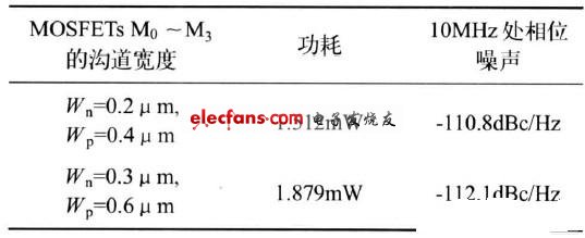 表2 器件尺寸不同时测得的功耗及相位噪声