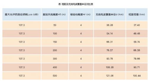 从视距及无线电波传播损耗来看,不同CDMA基站发射天线挂高对应的传播距离不同(如表所示)。结合理论分析可以看出,基站的覆盖距离主要取决于可视距离。