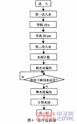 为了尽量减少测量误差保证测量精度严格符合水文规范要求,在测垂线水深子程序中采用了二次入水操作,程序流程如图6所示。