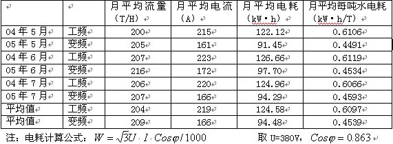 以下是该厂凝结水泵改变频控制前、后录得的一组数据,如表1。