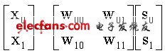 在空间分集和空间复用中,通常认为发射机不了解信道信息。当发射机具备信道信息时,可改善系统性能。信道信息可以是完整的也可以是部分的。完整的信道信息意味着发射机已知信道矩阵。部分信息可能指的是瞬时信道的某些参数(例如矩阵信道的条件数)或统计特性(例如发射或接收的相关特性)。图 4 显示了使用信道信息的预编码框架。发射信号(S0,S1)与预编码相乘,这可以解释为波束赋形。经过预编码之后,两个分离的数据流可从两个发射天线同时发送,作为空间复用,但是矩阵编码器将根据信道信息发生变化。假设发射机已经知道发射相关矩阵,则可以使用相关矩阵的特征矩阵建立预编码矩阵,以优化遍历容量。将 2 X 2 预编码矩阵表示为 W,则符码周期 t1 内的发射符码为: