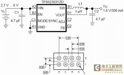 采用最先进的模拟工艺与设计技术的最新一代DC/DC转换器具有几个可节省空间的特性。图4是一种可提供高达500mA内核电流的超小型、高精度DC/DC降压转换器。因为集成了两个开关晶体管,所以该电路仅需一个电感和两个小电容。独特的控制架构可使电源对负载瞬变做出快速反应,并保持±1(的高电压调整精度(这正是如今高性能处理内核所要求的)。3MHz的开关频率可使电感大小减少至仅为1uH,从而允许使用高度小于1mm的薄型芯片电感。这种器件还提供芯片级封装,IC尺寸可减小至2×1mm,因此整个解决方案可被构建成安装在5×5mm2大小的空间里。为进一步减少电源消耗,高级DC/DC稳压器还具有自动的脉冲频率调制(PFM)/脉宽调制(PWM)模式转换功能,以尽量提高宽负载范围内的转换效率。在轻负载情况下,转换器工作于PFM模式,而当负载电流大于50mA时,则采用PWM控制,这样便可以80%至90%的效率提供1.8V/500mA的内核电源。