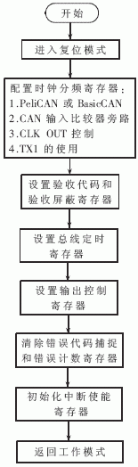 图5 CAN通信主程序流程图 图6 SJA1000初始化流程图