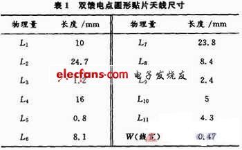 1.1 双馈电点固贴片天线尺寸