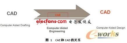 从前面关于CAD的定义“ CAD是工程技术人员以计算机为工具,对产品和工程进行设计、绘图、分析和编写技术文档等设计活动的总称。”CAD中必须含有分析(CAE),也就是说面对设计,CAE是CAD的子集,缺少了CAE的CAD系统是不完整的计算机辅助设计系统。下图彻底揭示了计算机辅助制图、CAE和计算机辅助设计的真正内涵。