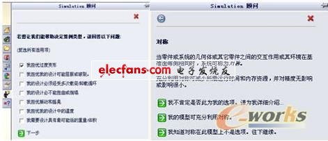 SolidWorks Simulation的仿真向导,包含以下顾问向导:算例顾问(图2)、性能顾问(图 3)、约束和载荷顾问、连接顾问、结果顾问