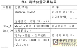 测试时需要输入相应的测试向量,一个好的软件界面可以大大减轻硬件工程师编写、输入测试向量的工作量。表4是一个测试向量的内容和结果,像这样的测试要进行多次以提高故障覆盖率并统瞥鯥P的性能。