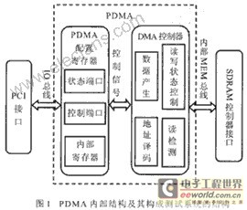 (2)PCI接口模块写PDMA的控制寄存器,启动对SDRAM的读写;