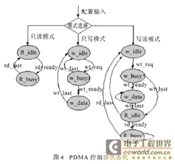 PDMA控制器的结构如图3所示,其核心逻辑是一个状态机,我们采用一个两层嵌套的状态机来实现控制功能,如图4所示。