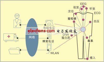 能否成功实现这种BAN,有赖于我们对现有器件的能力的扩展程度。因此,首先必需扫除医学和技术上的几个障碍。其一,如今使用的依赖电池供电的设备寿命有限,必需设法延长其使用寿命。第二,还应放大传感器和激励器之间的相互作用,以便适应多生理参数测定之类的新应用的需要。第三,器件应具备一定的智能,能够存储、处理和传输数据。此外,还必需扩展器件的功能,使其能够进行化学和生物学测量。最后,对医学现象也应有一个彻底的认识。