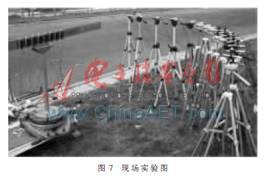 将相控声发射系统用于声发射阵列,以8阵元线性阵列为例,图7为现场实验图,扬声器间距为13.6 cm,输入信号为600 Hz、1 000 Hz、1 400 Hz。为实现在距离阵列中心1.5 m处聚焦,阵列两端的信号先发出,阵列中心的信号后发出。以声阵列中心为圆心、1.5 m为半径布置一个1/4圆弧,在圆弧上0°、2°、5°、10°、15°、20°、35°、40°、45°、50°、60°、70°、80°、85°(与阵列中心垂直的点标记为0°,记录数据为CH0,依次顺延)放置传感器并与扬声器阵列等高。表1为600 Hz测得的声压值。