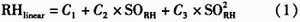 式中,RHlinear为经过线性补偿后的湿度值,SORH为相对湿度测量值,C1,C2和C3为线性补偿系数,取值如表3所示。