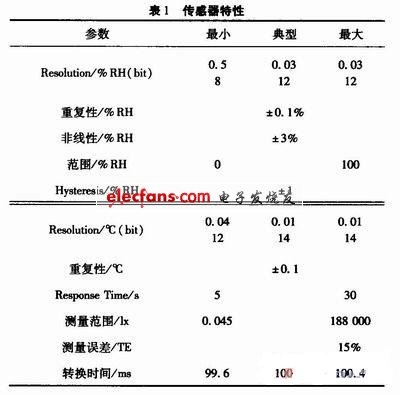 该传感器集环境温、湿度和光照度传感器于一体,使测量系统的成本和体积大为降低,减少了系统设计的复杂性。