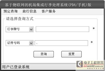 例如,用户可以通过手机或无线PDA或Web客户端随时随地查询行李的当前状态。