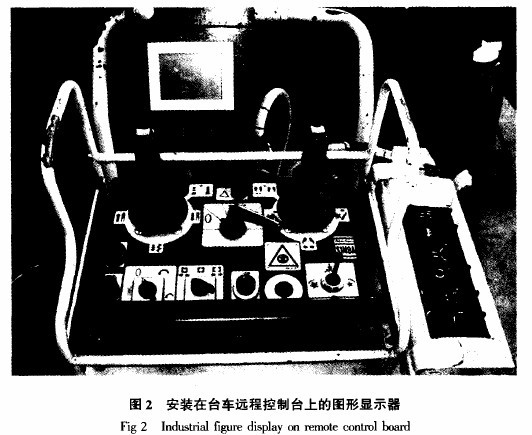 图2是安装在台车远程控制台上的图形显示器。图形显示器的下方是随凿岩台车带来的远程控制台,通过工业图形显示器的触摸屏可实现台车自动定向定位操作;而通过远程控制台可实现台车手动定向定位操作。