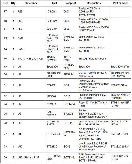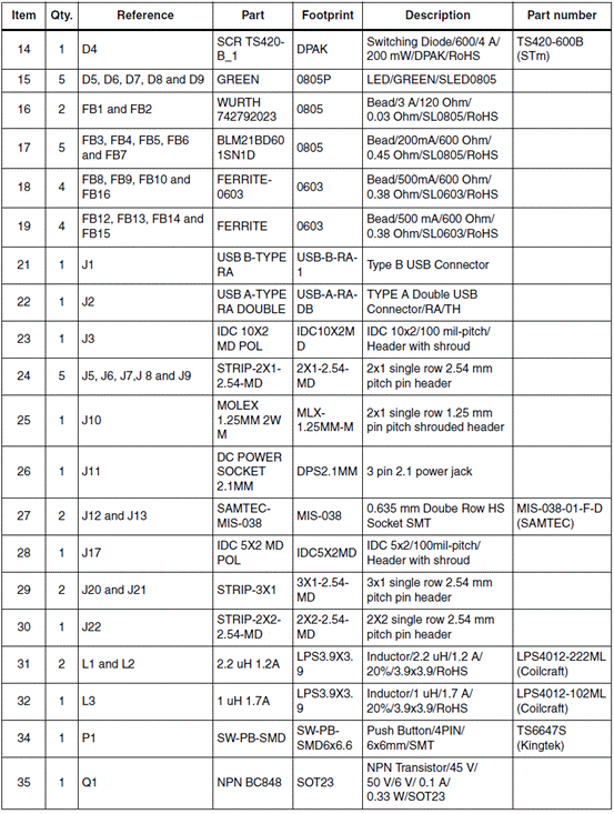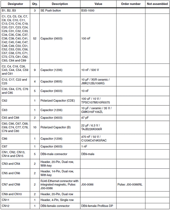 MII应用板材料清单(BOM):