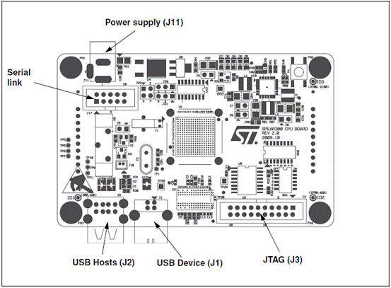 The SPEAr320 microprocessor is mounted on the CPU board that is plugged on the MII mode application board.