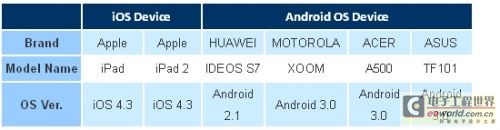 表一 受测平板装置总表。
