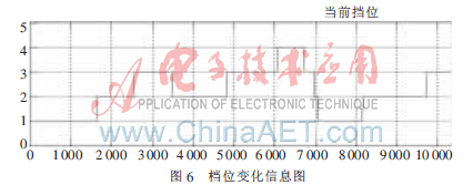 经过试验,CAN总线传送的挡位变化信息如图6所示。