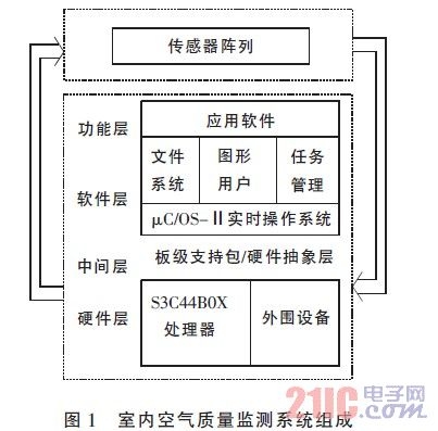 本文主要介绍了基于S3C44B0x 和μC/OS-Ⅱ的室内空气质量监测系统的软、硬件设计方案以及系统中气体传感器的工作原理。在监测仪中移植嵌入式实时操作系统对提高嵌入式系统的实时性、可靠性,缩短开发周期和减小后期维护的难度具有重要意义。经测试,该监测仪具有运行稳定、测量准确、报警及时、操作简单、功能齐全、便携性好等优点,并且随着S3C44B0x 以及其外围电子芯片价格的降低,该监测仪更具有成本低廉的优点,适合普通家庭使用。