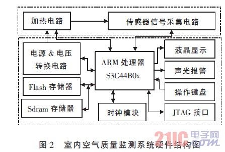 室内空气质量监测系统硬件结构图如图2 所示。