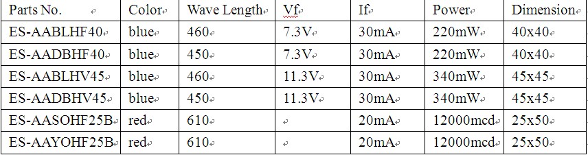 目前只知道台湾的晶元光电正在生产这种高压LED,但是在晶元光电的网站上只查到几种电压并不太高的HV LED。其指标如下表所示: