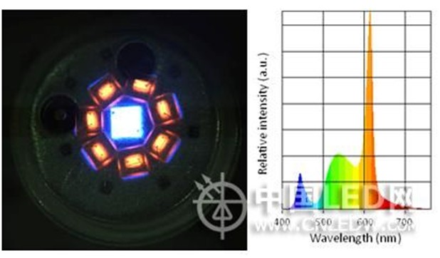 图5. 晶元光电的150lm/W的暖白LED采用蓝光和红光LED的组合