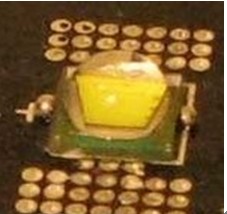 3. “高压LED减小了LED的面积”,的确如此。例如:对于一个36W的LED,如果采用36个1W的LED那么就会占据很大的面积,而如果做一个集成的36W高压LED,那么就只要很小的面积(图3)。这个看上去是优点,但如果从散热的观点来看就未必是优点。因为假如二者的发光效率相同的话,那么它们将要散发的热量是相同的。而在一个很小的面积里要散发出大量的热量,这在散热器的设计中将是一个大难题。