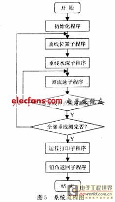 程序分为系统管理、运算处理、测验控制3大模块。系统管理模块包括:初始化、系统监控、操作切换、紧急处理等程序。运算处理模块包括:数据运算、误差修正、显示打印等程序。测验控制模块是由包括:测垂线到起始点距离、测垂线水深、测垂线流速、测垂线水位、接口数据采集等诸多子程序组成。