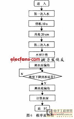 为了尽量减少测量误差保证测量精度严格符合水文规范要求,在测垂线水深子程序中采用了二次入水操作,程序流程如图6所示。