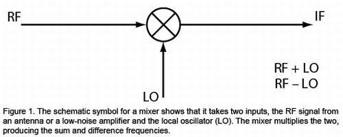 最简单的混频器就是一个乘法器。音频混频器只增加信号,射频混频器实际上增加输入信号以产生新频率的输出信号。射频调制器和解调器本质上就是混频器。这些器件获取基带输入信号,并输出射频调制信号(反之亦然)。