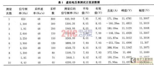 虚拟直流电压表针对不同的直流输入,其量程的大小影响测试的精度,在测量电压时,应使被测电压在量程的2/3以上。一般量程应选定在被测电压的3倍值以上。当输入直流测试信号在0~3V时,测试的量程应选在10V,其测试的误差基本为O.0012V。交流测试时,利用信号发生器发出测试信号,将虚拟电压表和万用表与示波器的测试值进行比较,虚拟电压表测试值如表1所示。在测试中,应注意合理设置采样率,其是减小测量误差的重要途径。