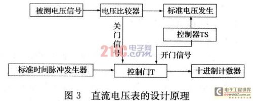 基于DAQ及LabVIEW的数字电压表包括直流电压表和交流电压表的功能,直流电压表的设计原理如图3所示,采用电压-时间变换型原理。