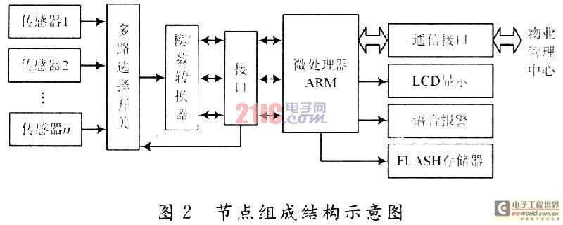 考虑到各业主间的完全独立的特殊性,前端设备采用嵌入的设计方法,其硬件组成结构如图2所示。