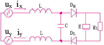 首先建立整流电路的节点电流与回路电压方程,根据桥前线电压不同与整流桥二极管导通规律,划分6个区间,绘制等效电路,见图3,并建立相关方程。