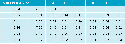 表2 谐波电流含量(电感25mh/y接电容35μf)