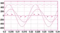 (2)电感电流具有较高的正弦度,但不是真正的正弦波形,反映了整流桥二极管的换相过程;