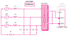 图4 单级lc滤波器-三相不控整流桥-电解电容-电阻负载系统仿真原理