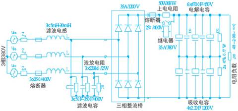 图5 单级lc滤波器-三相不控整流桥-电解电容-电阻负载系统实验原理图