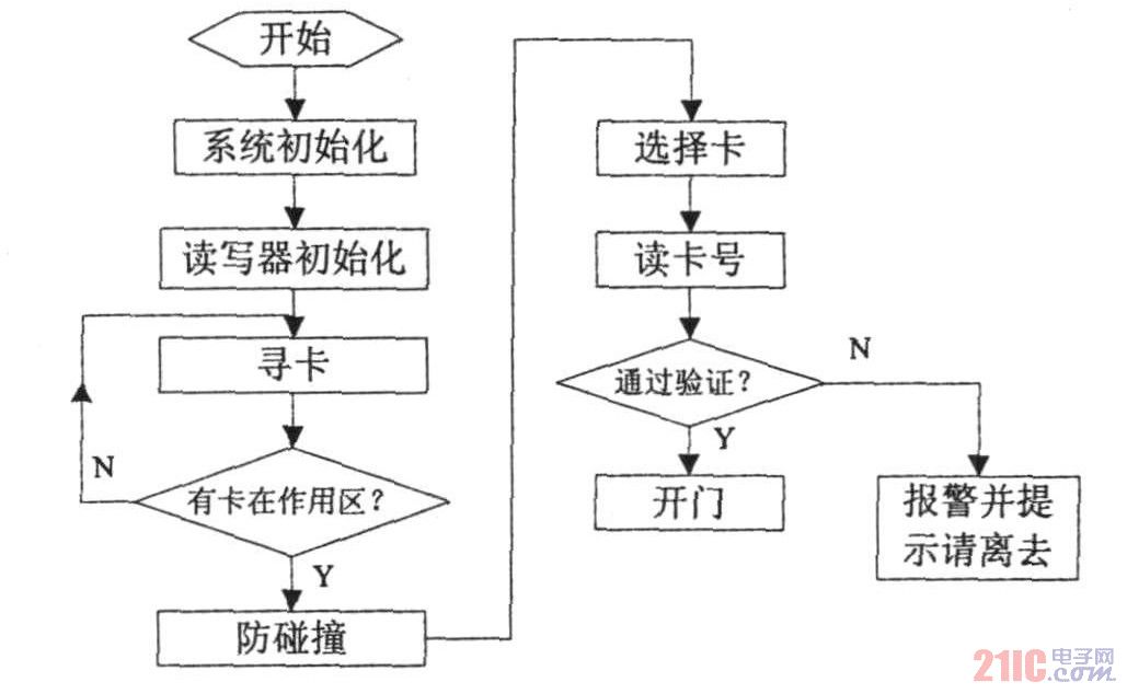 若该卡已进行注册,则通过验证并通知控制器开门,并记录卡号和开门时间,反之则禁止通行并告知持卡人离开。