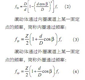 在工程中,这三个通过频率fbp、fip和fop又常被称作滚动轴承的滚动体故障特征频率、内圈故障特征频率和外圈故障特征频率[6]。