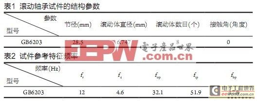 本文采用的数据为单列深沟球轴承的数据,所涉及到的滚动轴承试件类型为GB6203,试件基本参数如表1所示,轴承所在轴的转频约为12Hz,采样频率fs=12800Hz。