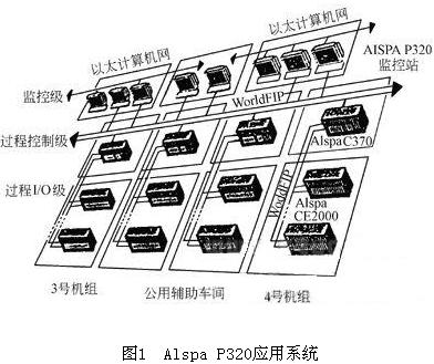 例1:Cegelec Alspa P320系统(见图1)应用于我国华能珞璜电厂(4×360MW)二期工程(2×360MW)机组的自动控制。该系统有31个双冗余WorldFIP网络,16个监视和控制站,32台冗余PLC,处理18000I/O点,50000点控制数据。该系统采用双绞线媒体,操作站冗余并有后备站,系统典型的响应时间为50ms。