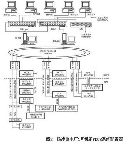 在例2中,杨凌燃机热电厂的Simaeic PCS7控制系统,控制器与各远程I/O间的通信是通过Profibus-DP现场总线来完成。控制器与控制器之间、控制器与服务器之间的数据通信是通过冗余的环型工业以太网来完成。