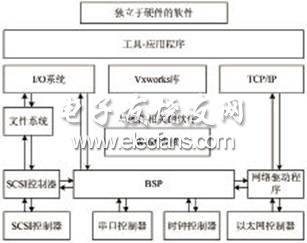 BSP在嵌入式系统中扮演的角色,很类似于在PC系统中的BIOS和驱动程序的地位。图1中包括了VxWorks操作系统的各种组件,指明了BSP在整个系统中所处的地位和作用。