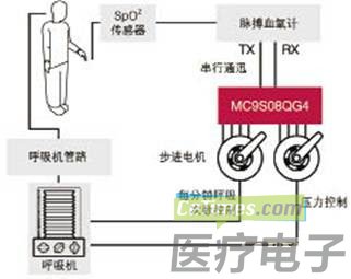 从脉搏血氧计读出的Spo2值能通过连接到S08QG的串行接口(SCI)被传递到自动呼吸系统,该系统使用了标准的串行协议,它由一种商业化血氧计的规格所定义。从脉搏血氧计出来的数据通过SCI接口被连续传送到呼吸系统。